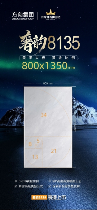 800x1350MM规格,长宽最接近黄金比例(0.618),实现墙地通铺——“2片满足层高,5片满足客厅深度”,整体视觉更和谐舒适,