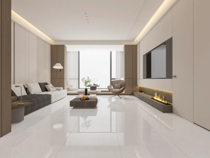 它是对通体大理石工艺的一次静默升级,优化坯体白度,使砖面色彩更为纯粹、纹理更具层次。98°全抛釉面,光感如丝绸般细腻,